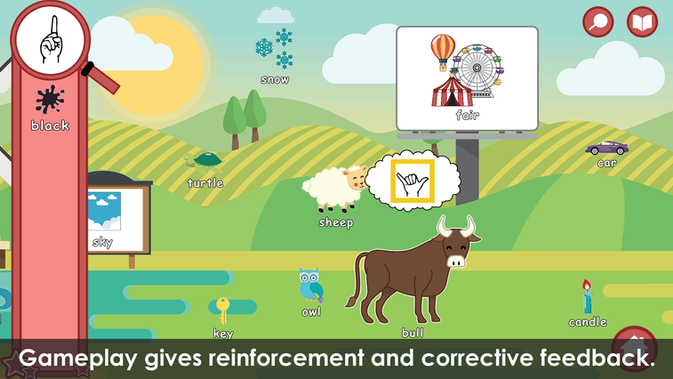 Increases engagement and motivation for mastering sign and print vocabulary by learning and practicing interactively.